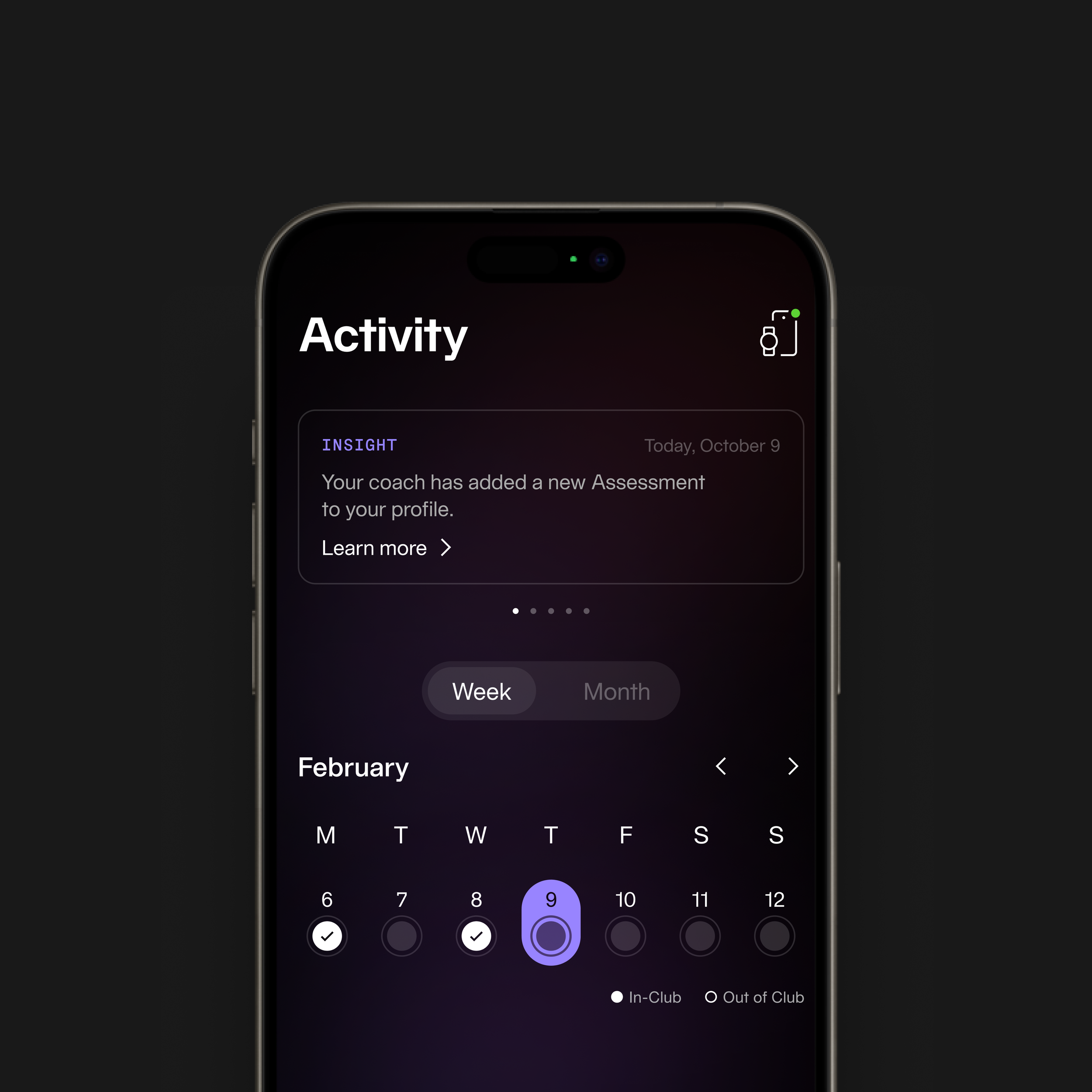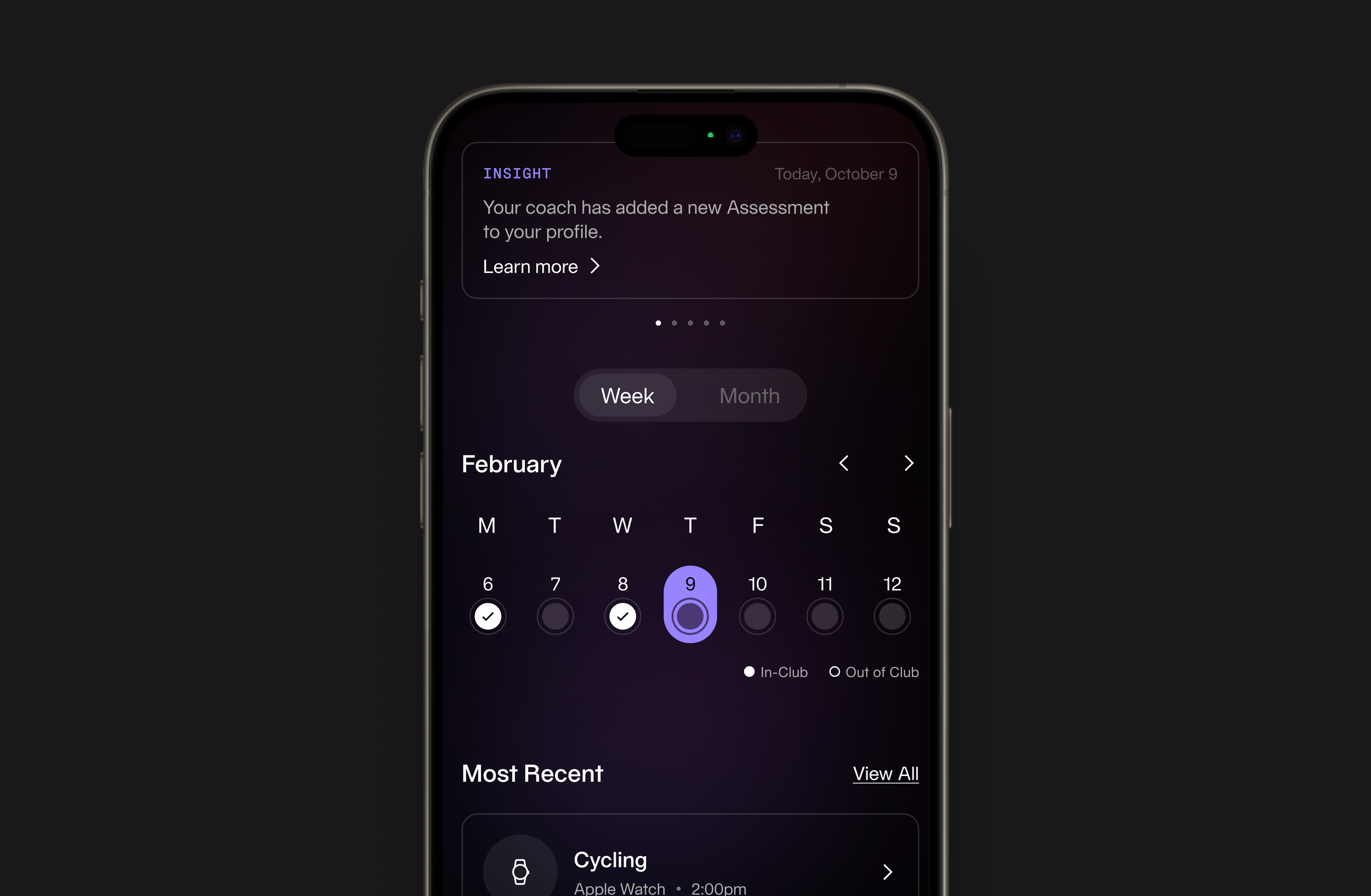 We structured the experience around time to help members quickly understand patterns, identify gaps, and track consistency. The calendar becomes a behavioral map—turning activity into a visible routine rather than isolated workouts.
