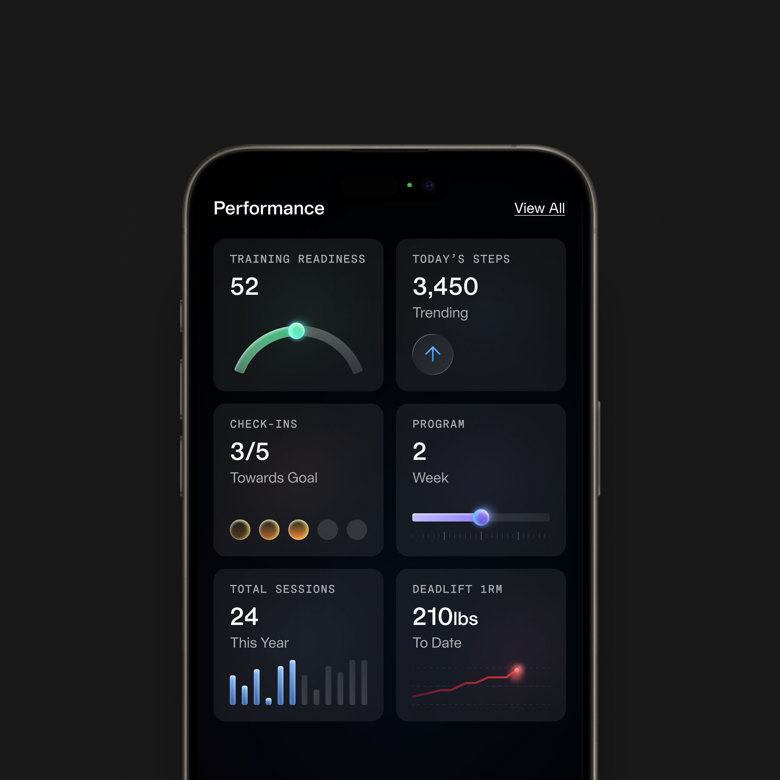 A personalized dashboard of key fitness metrics