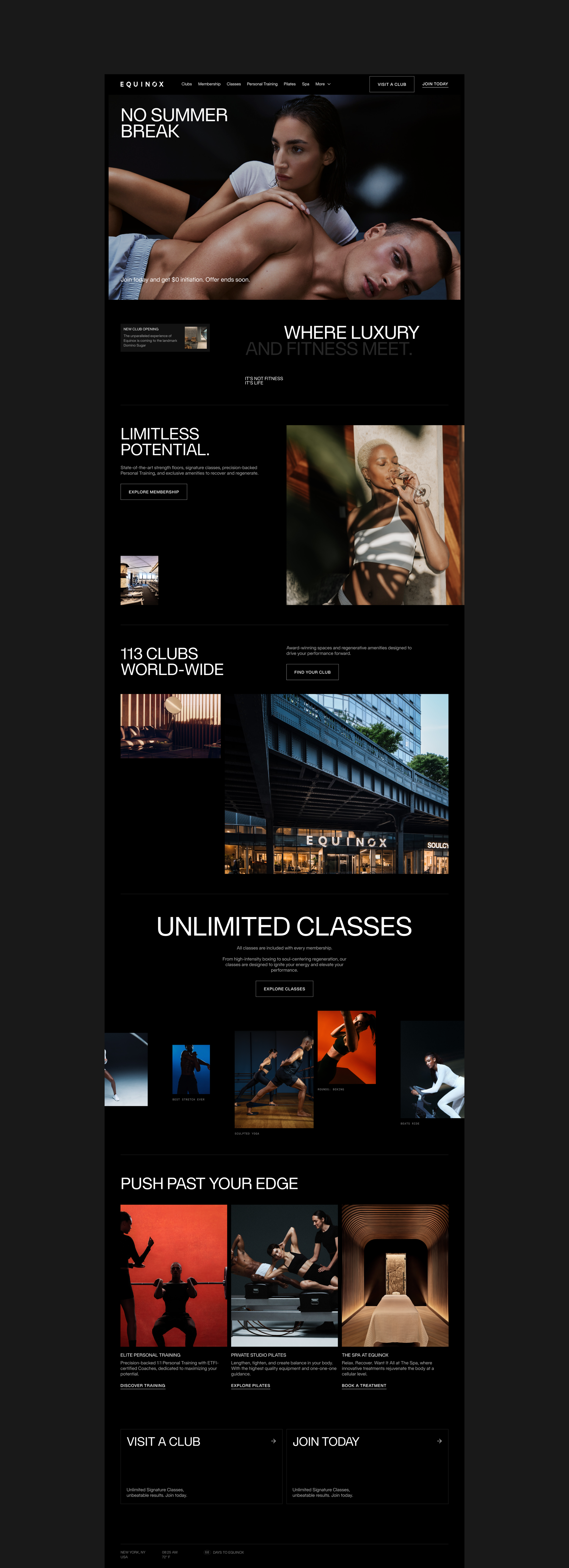 The Equinox website functions as both a brand experience and a product platform. It needs to communicate the brand’s premium positioning while also helping users explore clubs, understand membership options, discover classes, and ultimately convert into members. The project focused on redesigning key parts of the web experience to create a more cohesive, scalable, and visually elevated platform that could support multiple types of content and user journeys.