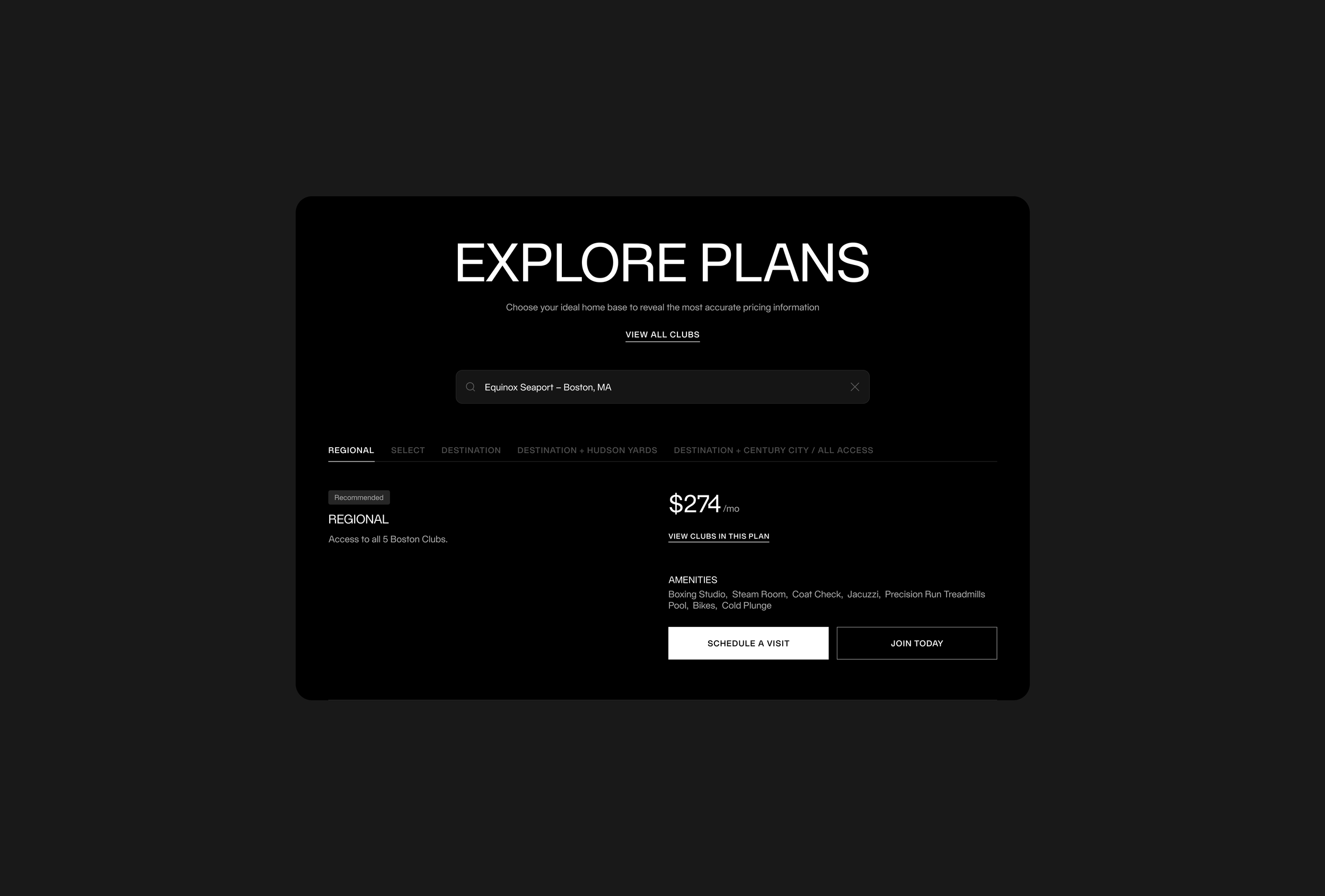 The membership plan selection experience was designed to simplify a complex decision into a clear, guided process. Users first select their primary club location, and plans are then presented based on that location, making pricing and access easier to understand and compare.