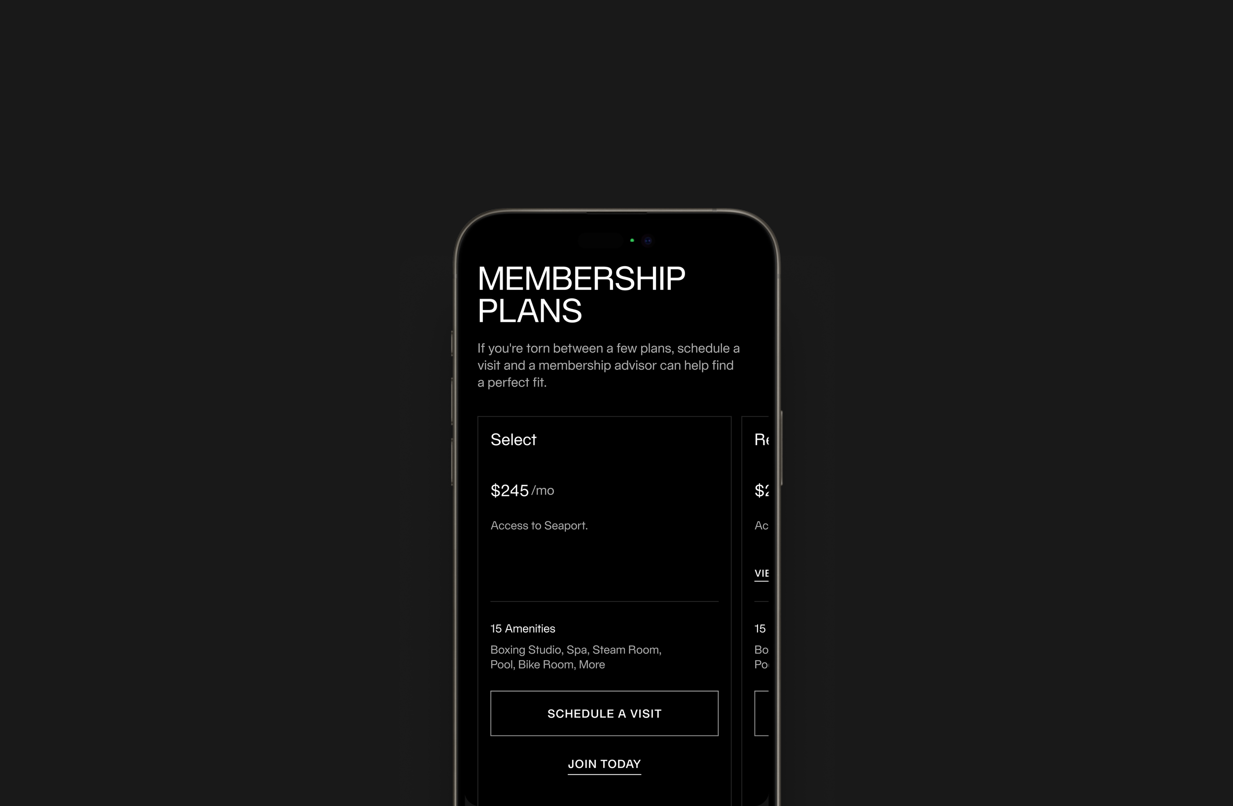 The layout emphasizes hierarchy, with pricing, access, and amenities structured for quick scanning. Clear actions like “Schedule a Visit” and “Join Today” are consistently placed to support conversion and create a straightforward path from exploration to membership sign-up.